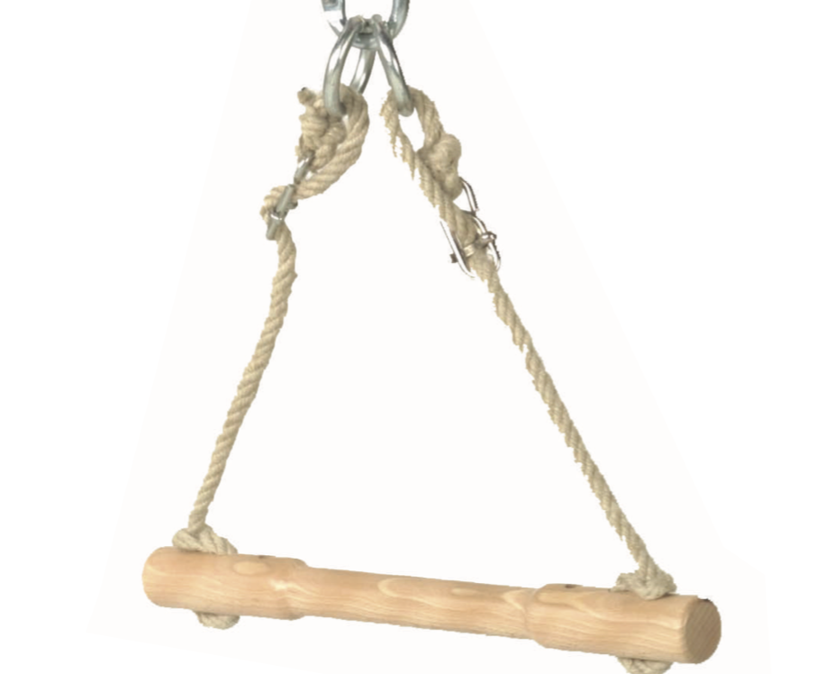 für Seilbahn: Sprosse aus Buchenholz 400*∅33 mm, profiliert & klarlackiert, 2 Hanfseile ∅12*240-400 mm (verstellbar), 2 Stahlringe ∅50|5 mm für Befestigung